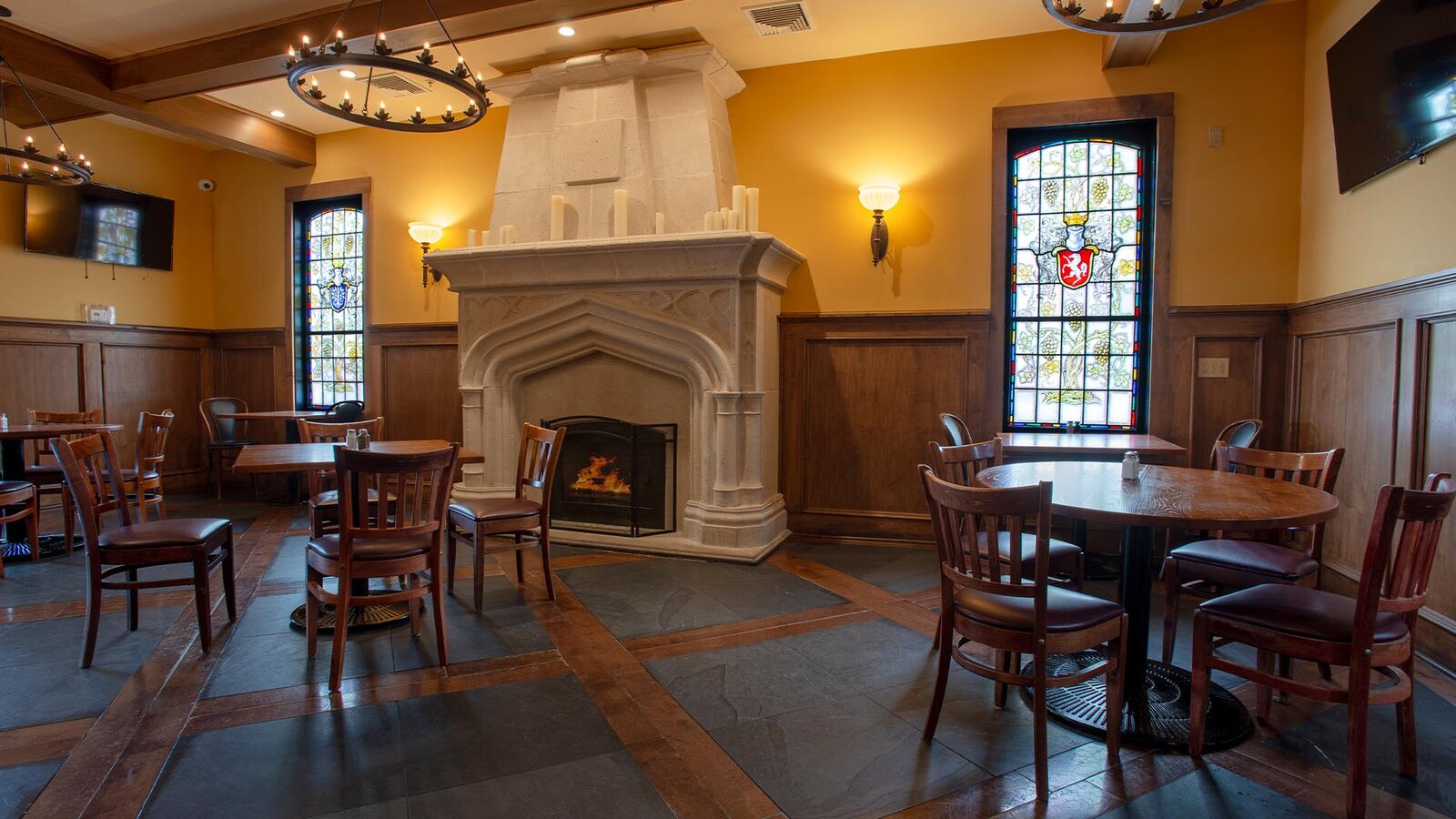 Dining room with view of fireplace